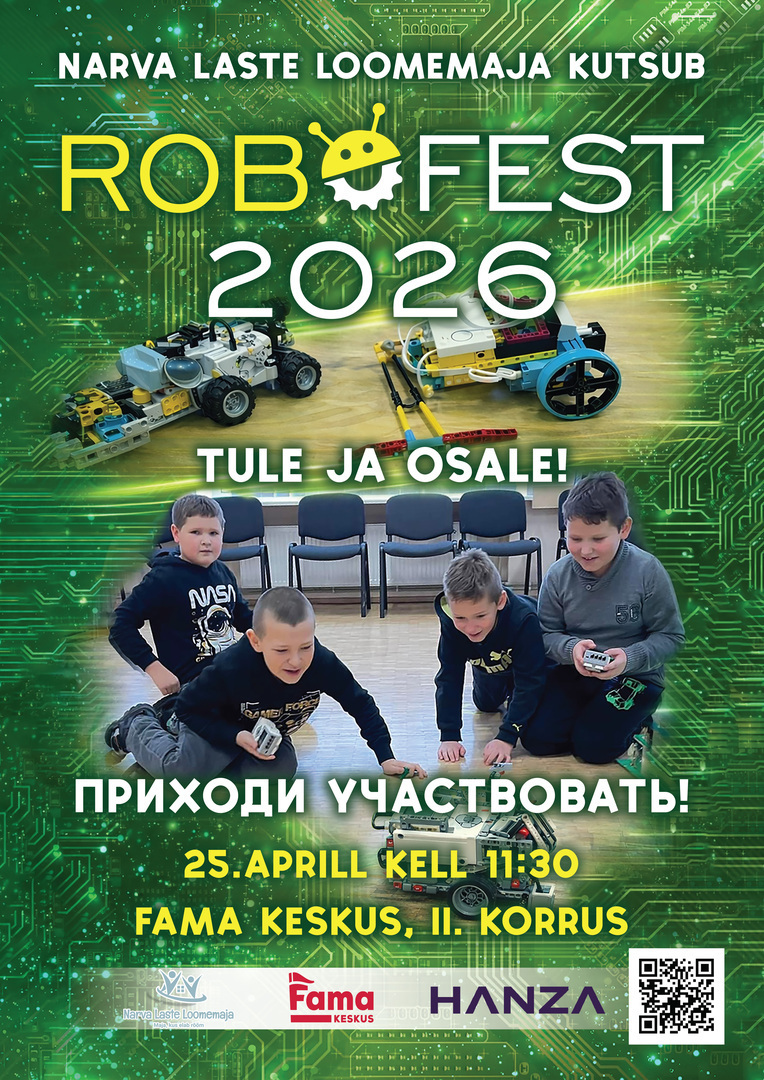 25. aprillil 2026 toimub Narvas robootikafestival Narva Robofest-2026 — põnev sündmus lastele ja noortele, kes tunnevad huvi tehnoloogia, ehitamise ja inseneeria vastu.