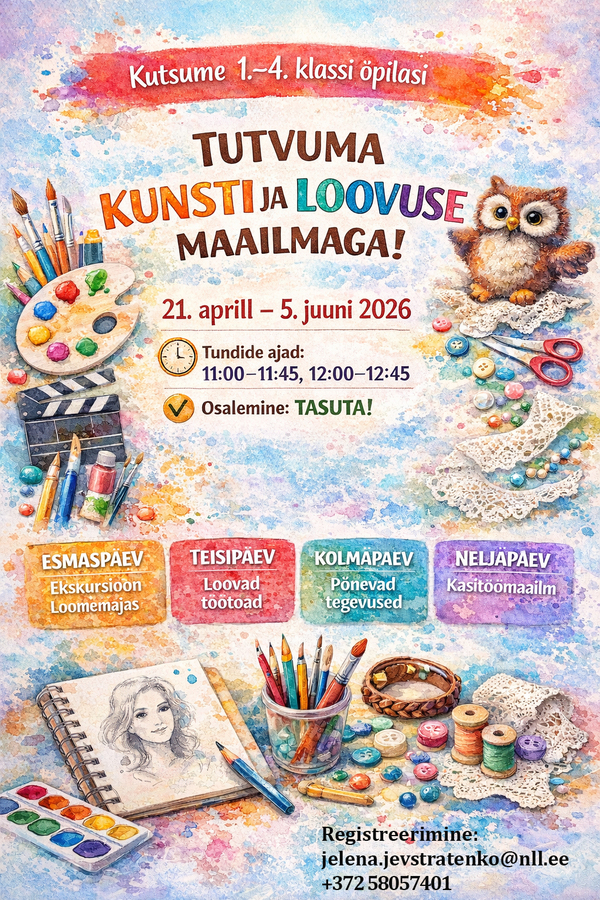 Kutsume 1.–4. klassi õpilasi tutvuma kunsti ja loovuse maailmaga